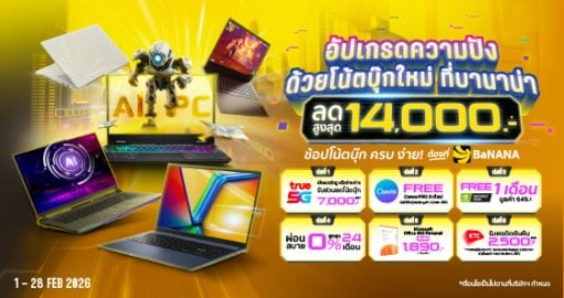 อัปเกรดความปังด้วยโน้ตบุ๊กใหม่ ที่บานาน่า ลดสูงสุด 14,000.-*