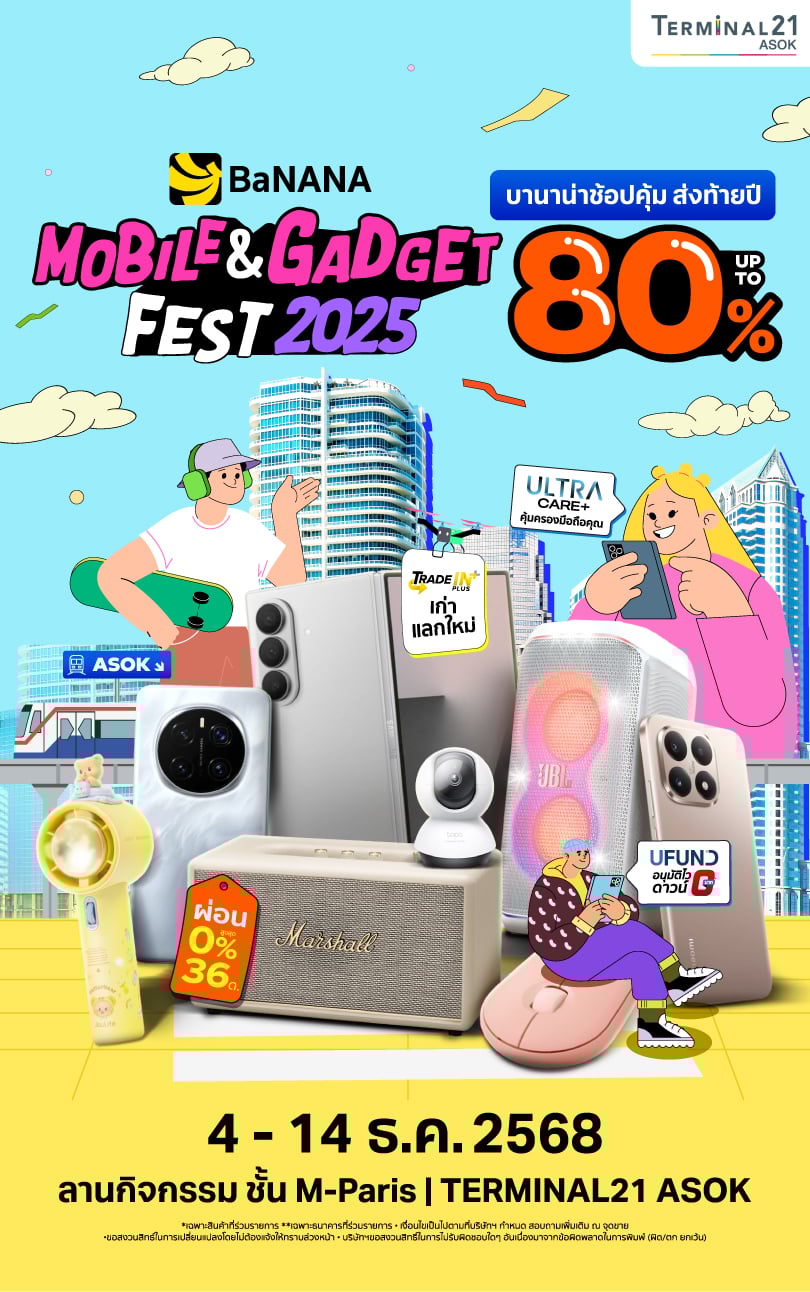📣 ช้อปคุ้มส่งท้ายปี! ที่งาน BaNANA Mobile & Gadget FEST 2025 ลดสูงสุด 80% @เทอร์มินอล 21 อโศก