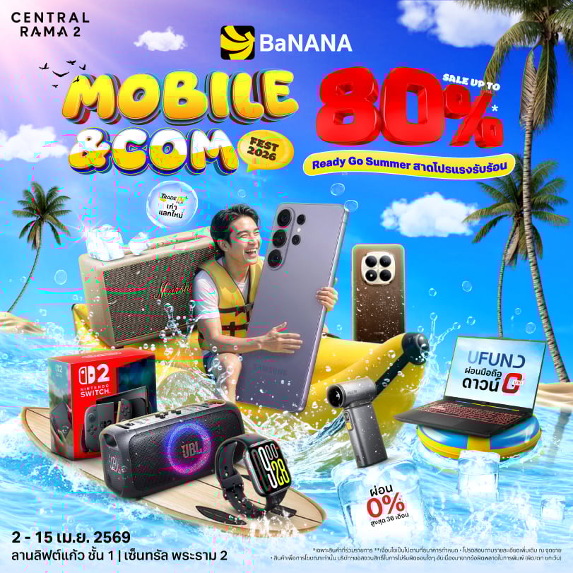 ☀️🏖️สาดโปรแรงรับลมร้อน กับงาน BaNANA Mobile & Com Fest 2026 ขนสินค้า IT ลดแรงสูงสุดถึง 80%* ที่ เซ็นทรัล พระราม 2