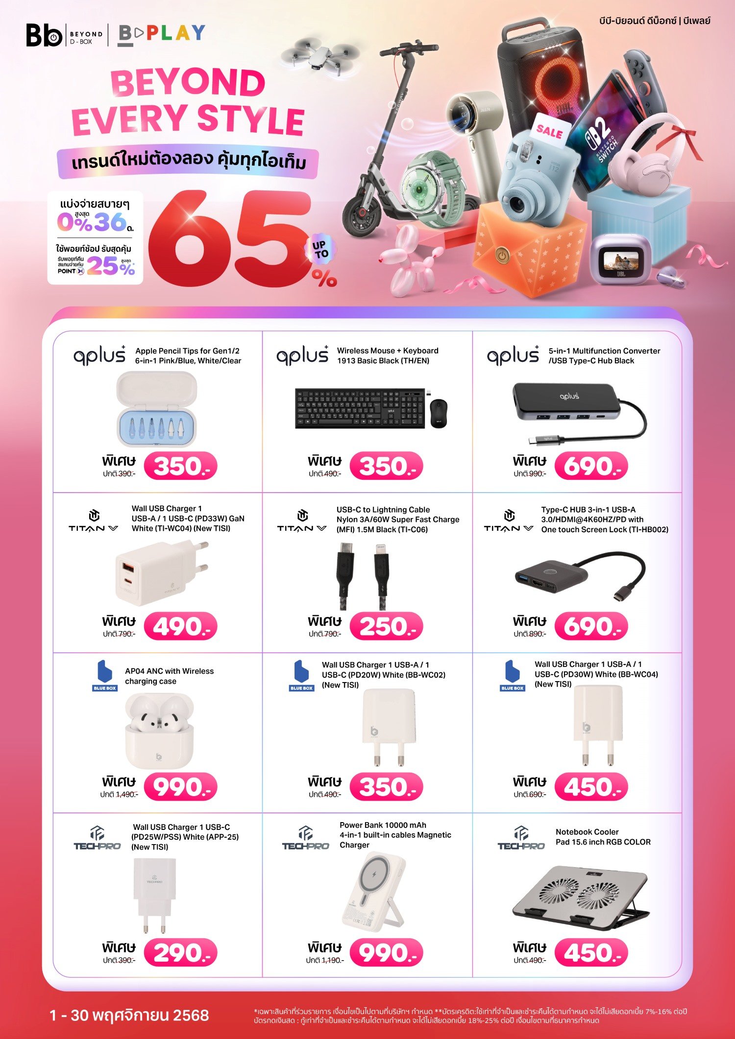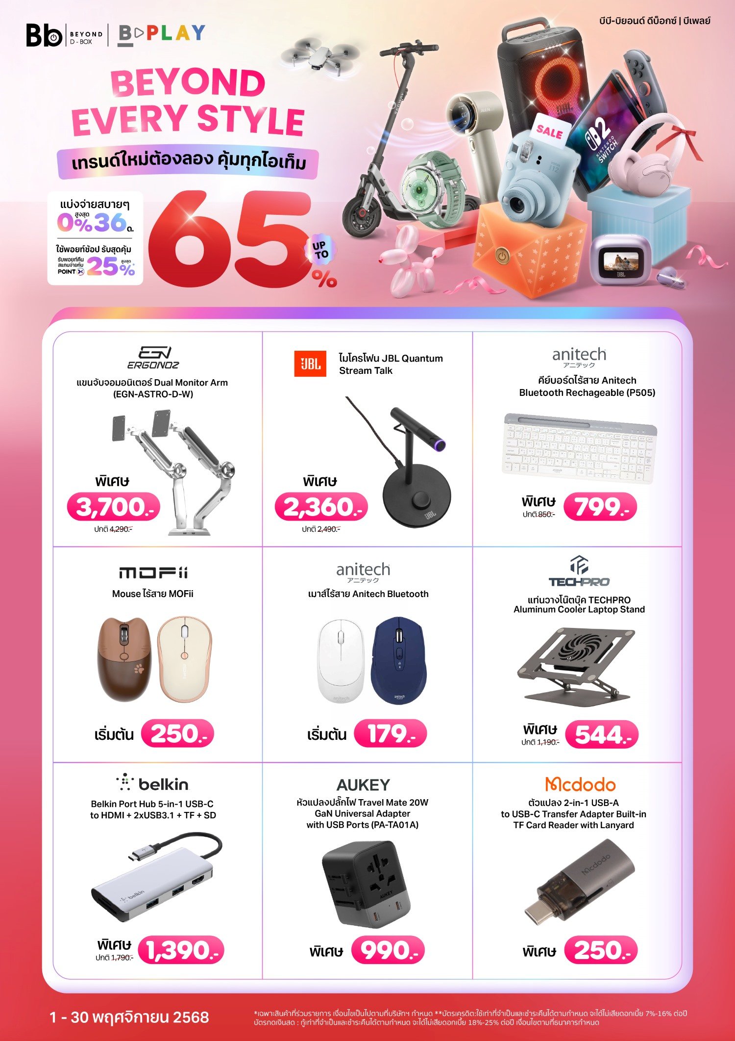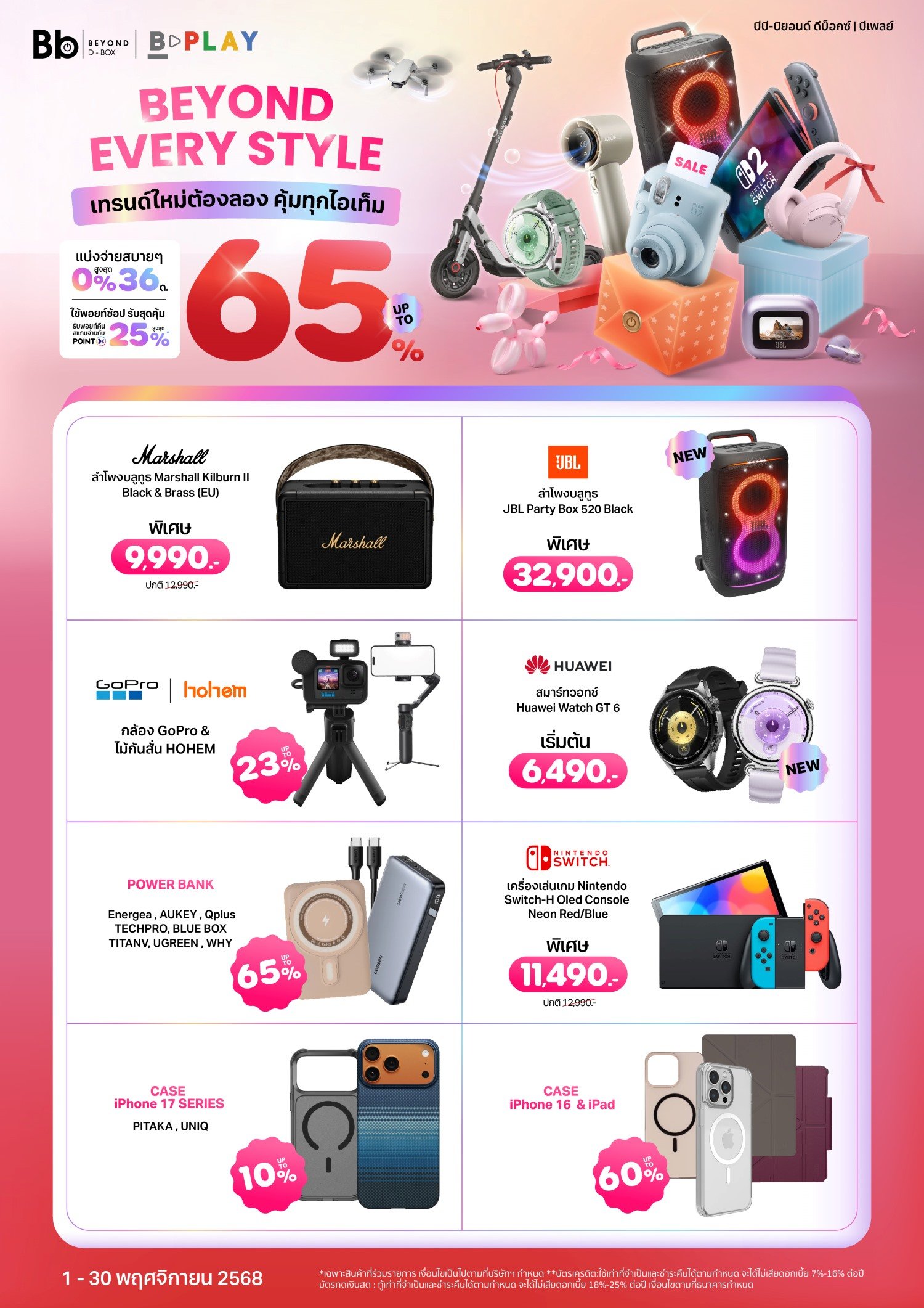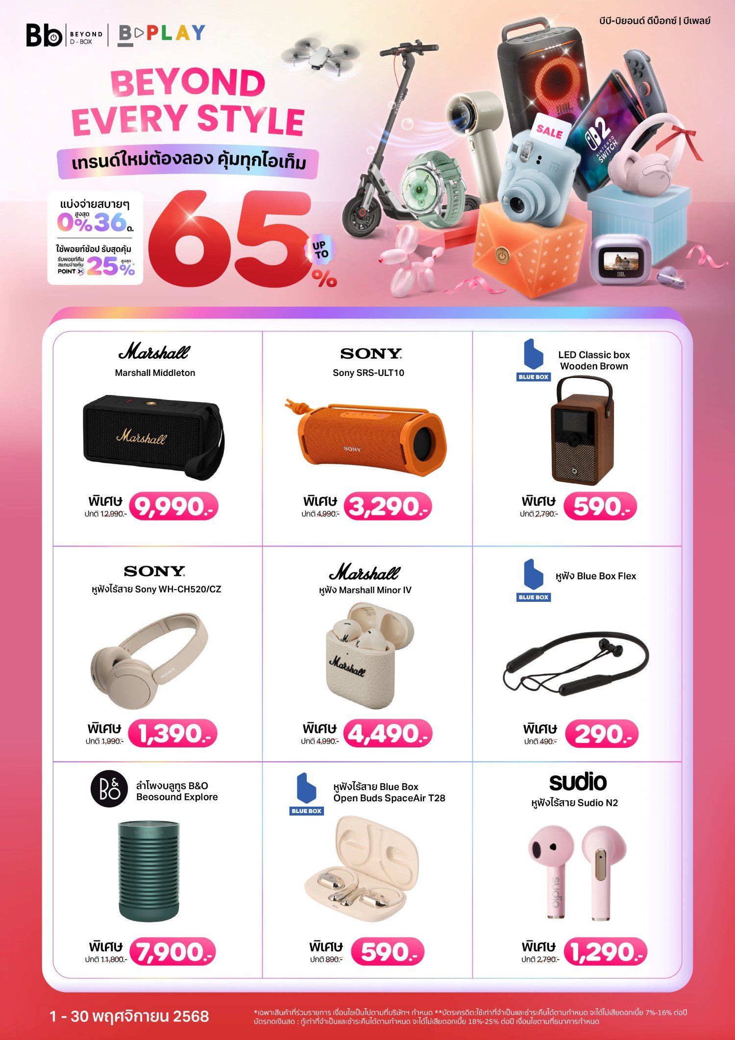 เทรนด์ใหม่ต้องลอง คุ้มทุกไอเท็ม ลดสูงสุด 65% ลองเล่นก่อนซื้อลำโพง หูฟัง นาฬิกา กล้อง เกม ผ่อน 0% สูงสุด 36 เดือน ที่ Bb Beyond D-Box และ B-Play มาสนุกกับโลกของ Gadget & Lifestyle Accessories