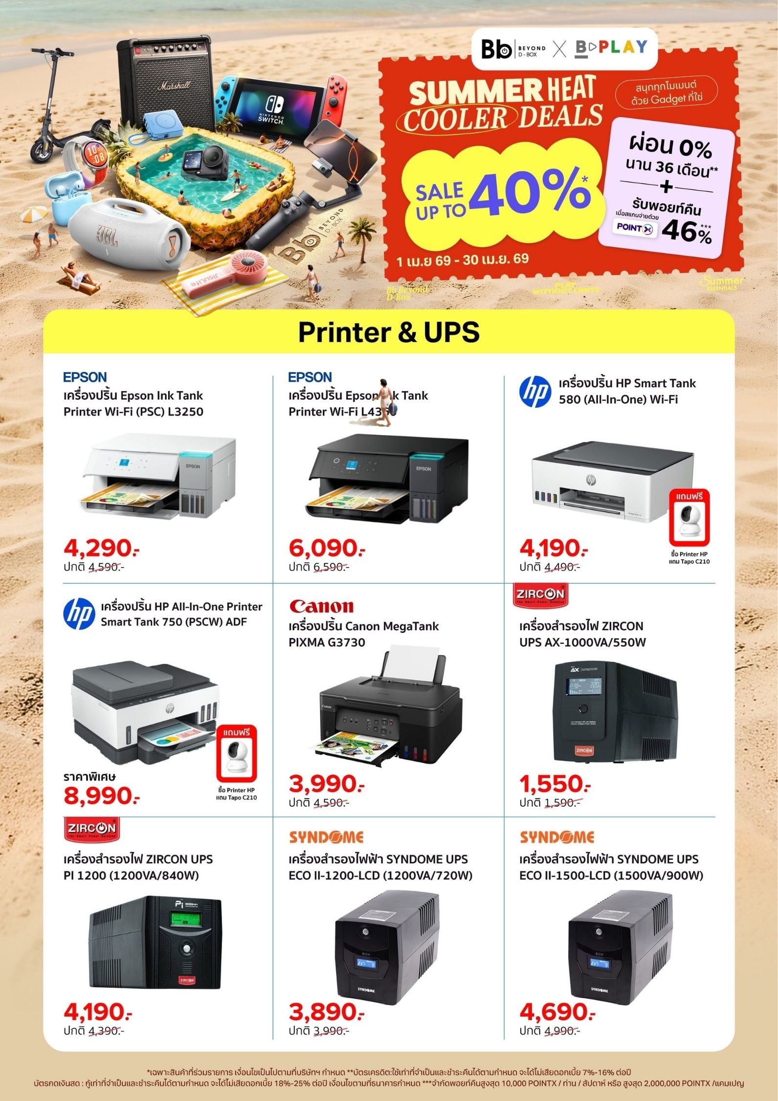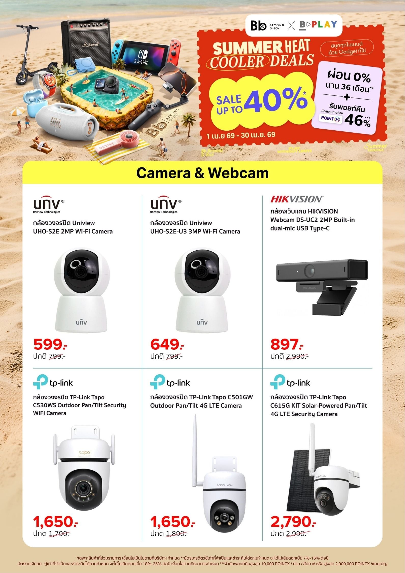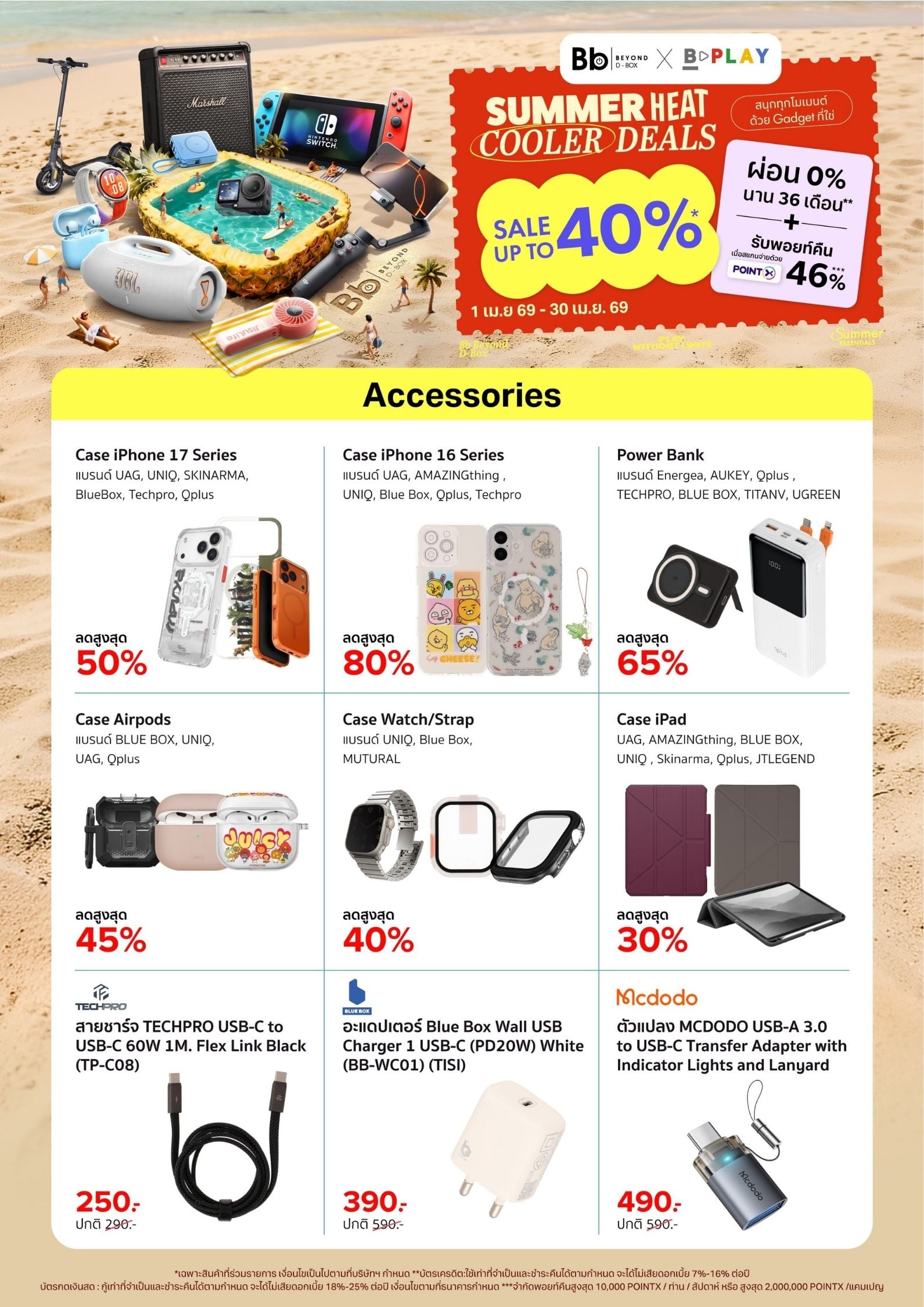 Bb Beyond D-Box จัดโปร SUMMER HEAT COOLER DEALS ลดสูงสุด 65% สำหรับ Gadget เช่น ลำโพง JBL, หูฟัง Sony, กล้อง DJI และอุปกรณ์เสริม พร้อมผ่อน 0% และรับพอยท์คืนสูงสุด 46% ตั้งแต่ 1–30 เม.ย. 2569