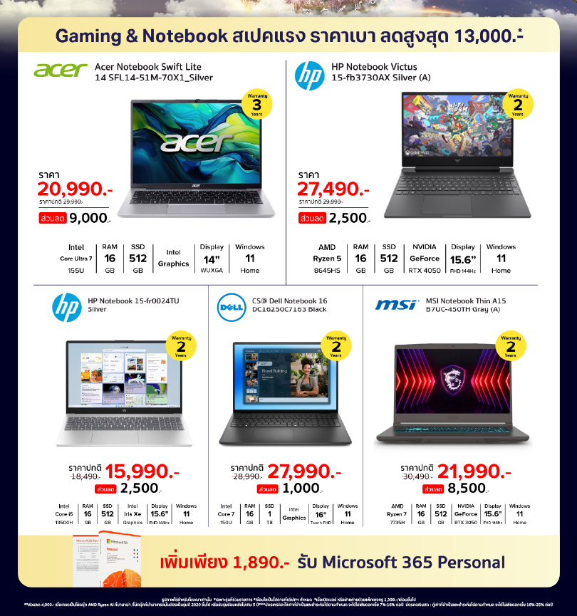 โน้ตบุ๊ก ลดสูงสุด 24,000.-*