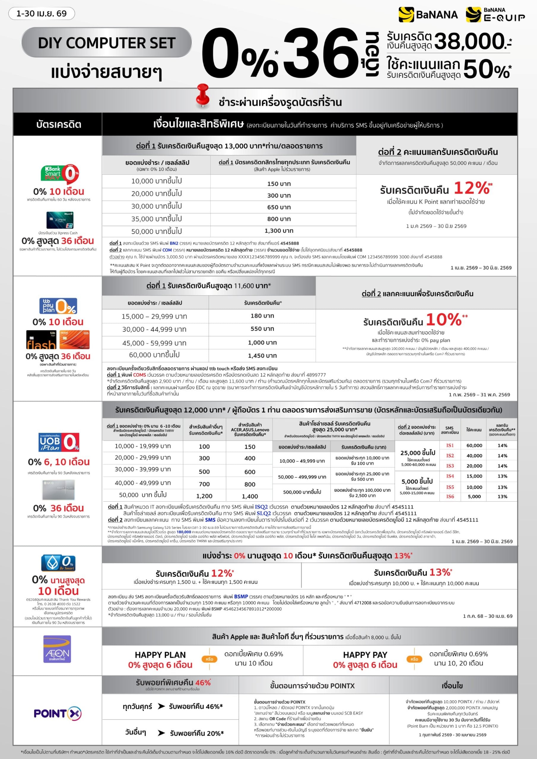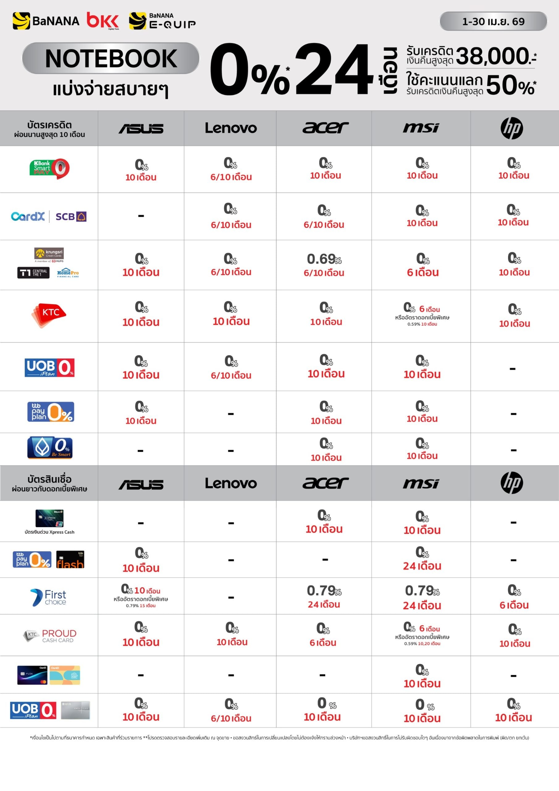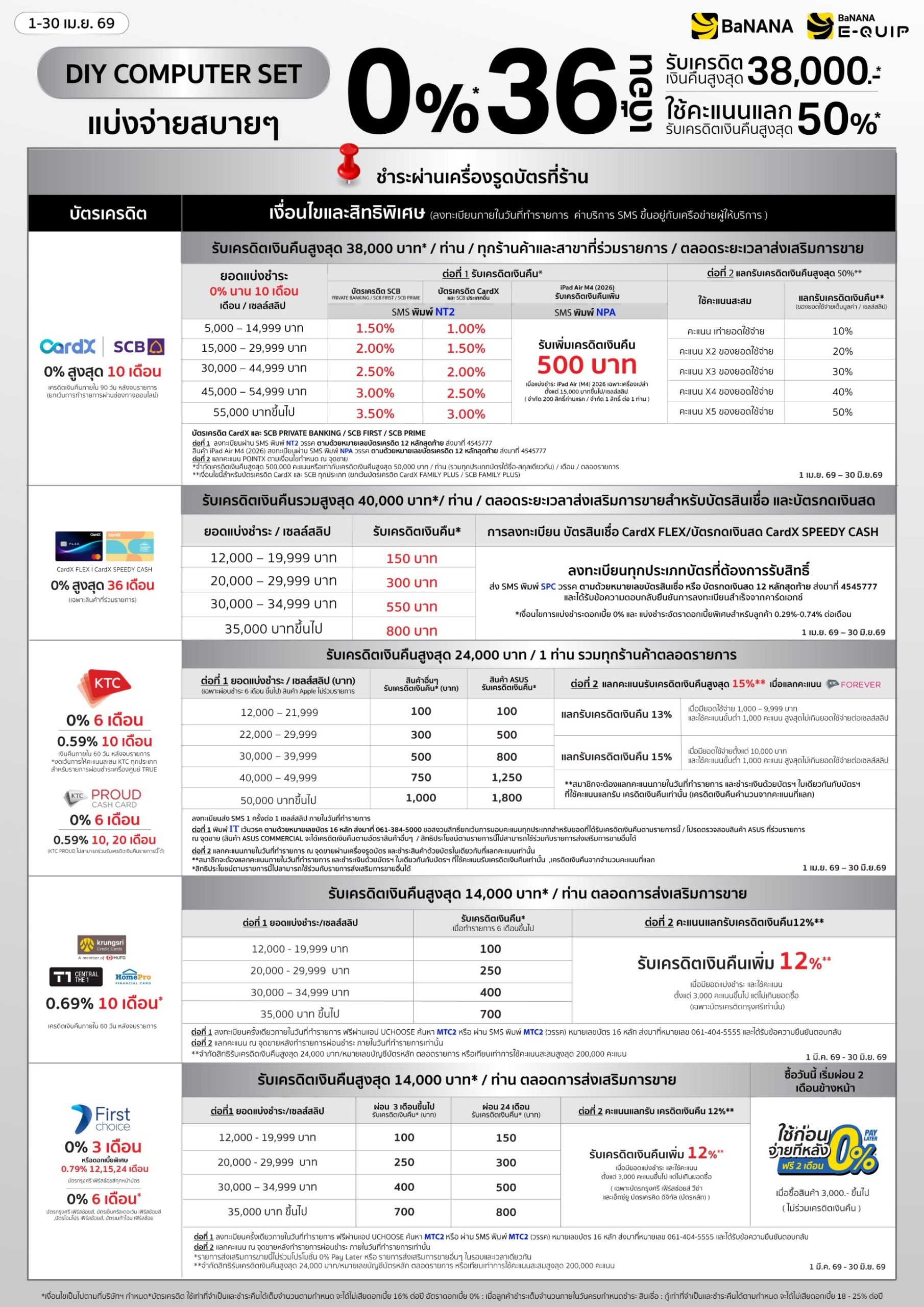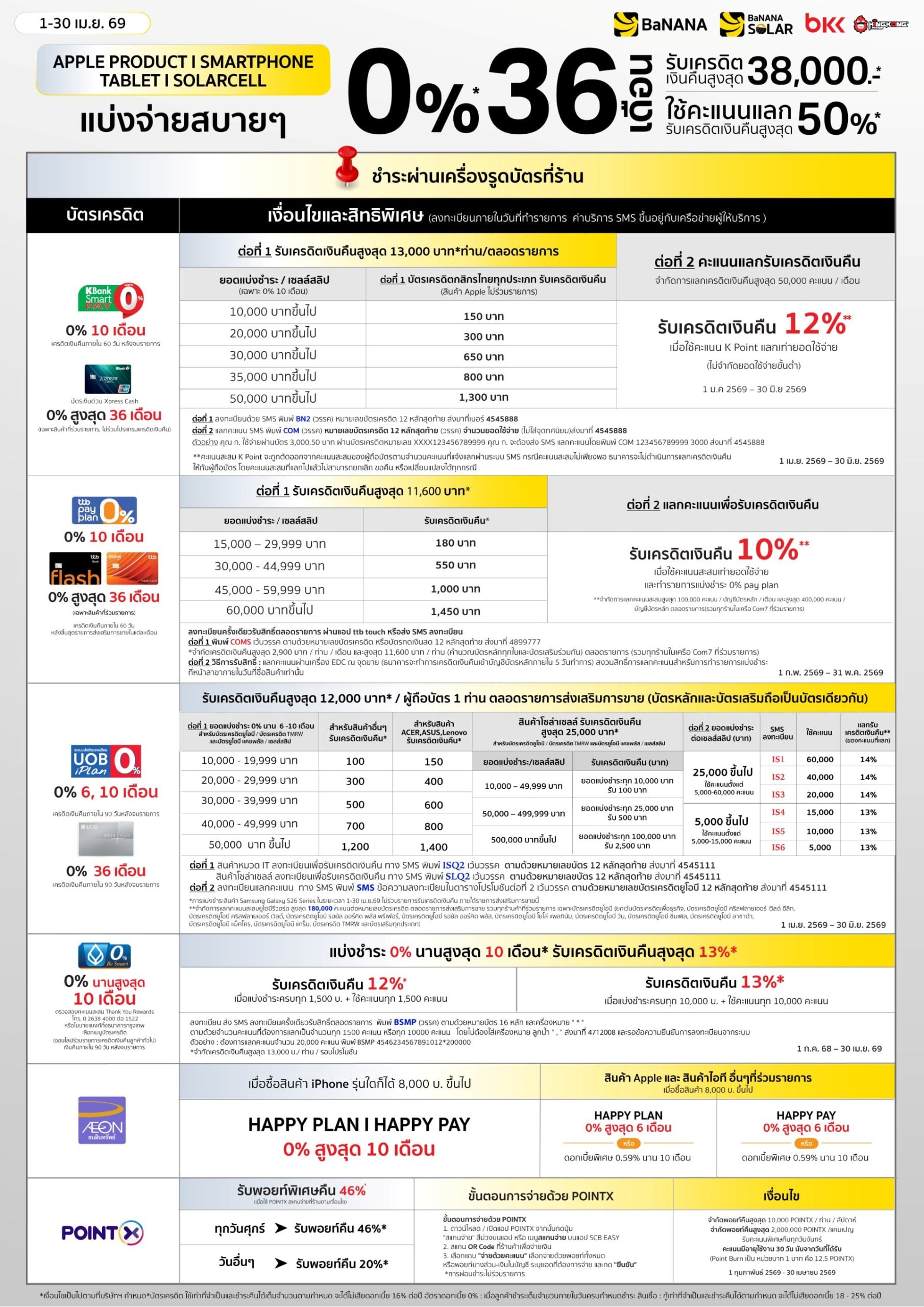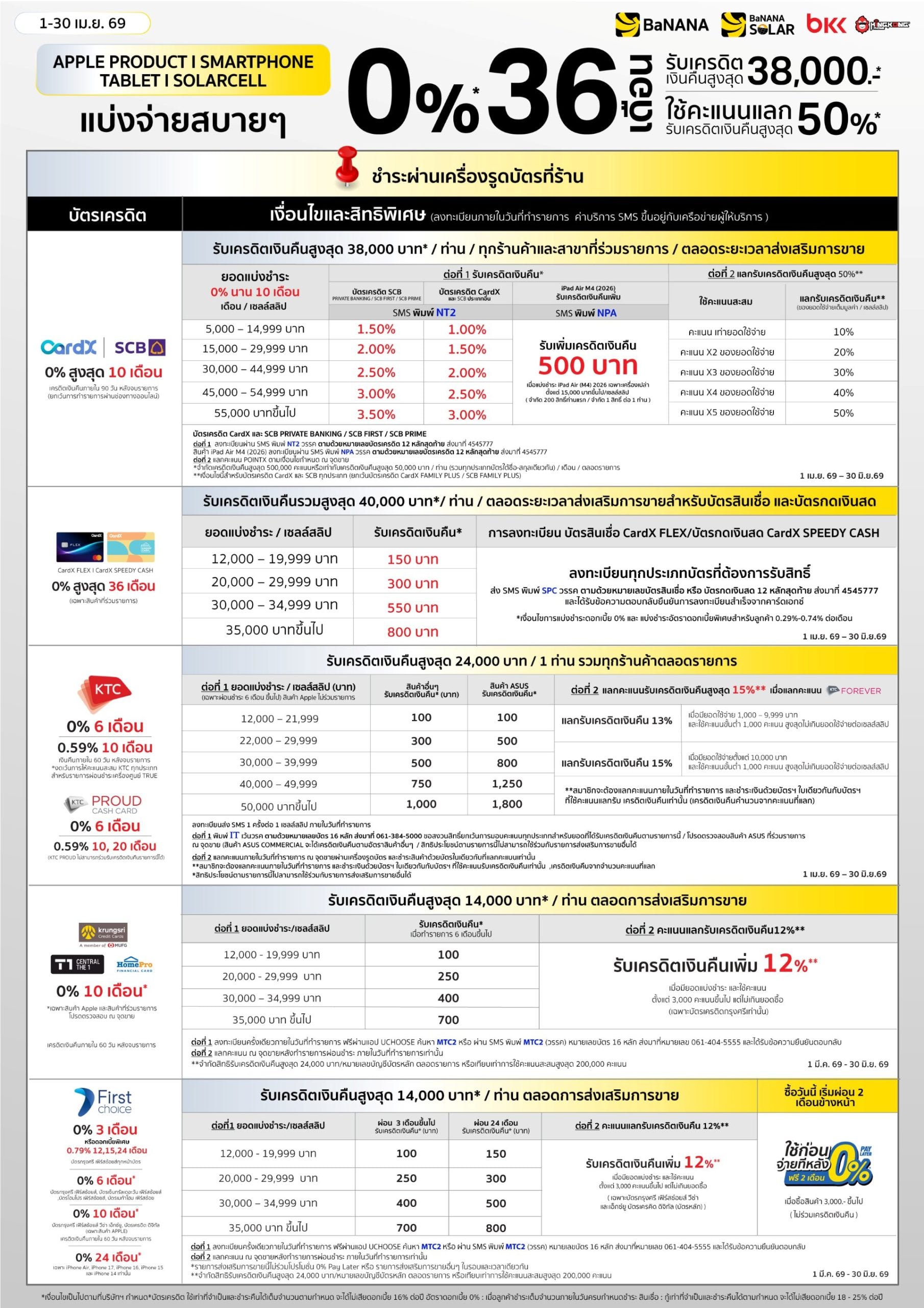 โปรโมชั่นบัตรเครดิต ร้านบานาน่า สำหรับผ่อนมือถือ โน๊ตบุ๊ก สินค้า Apple ผ่อนสบายๆ 0% นานสูงสุด 36 เดือน*