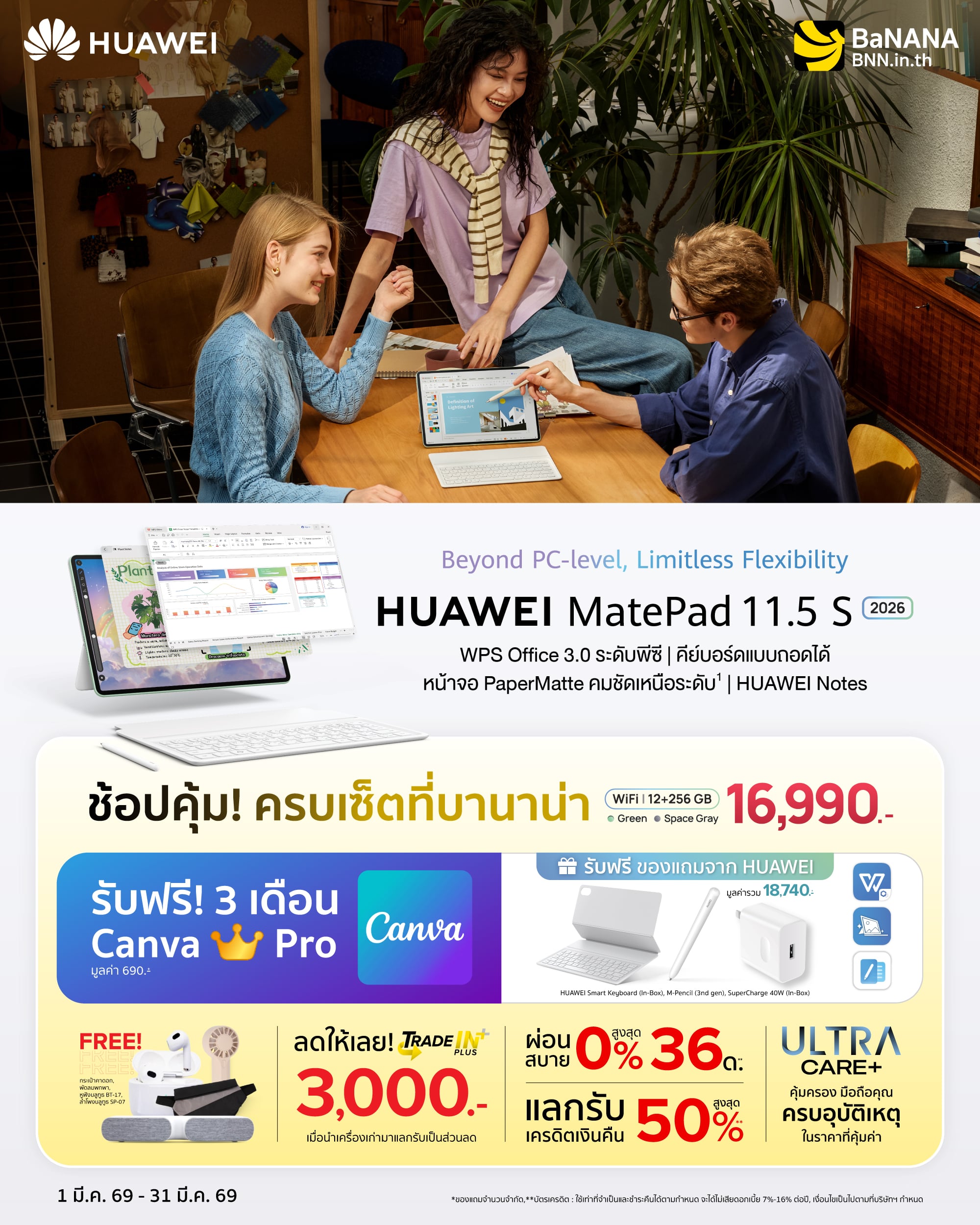 สิทธิพิเศษสำหรับลูกค้าที่ซื้อสินค้า Huawei MatePad 11.5 5 (2026) ที่ร้าน BaNANA