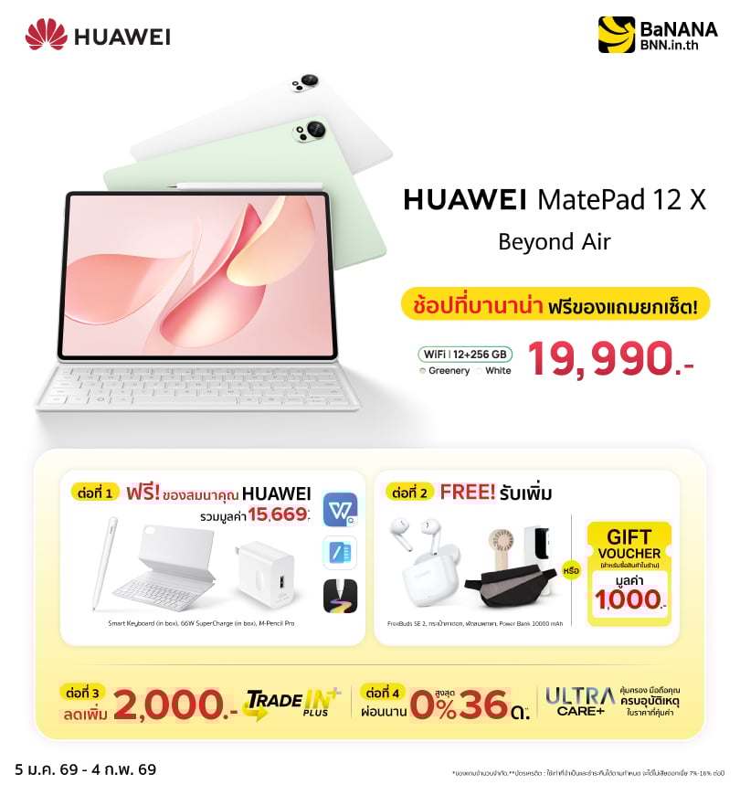 HUAWEI MatePad 12 X (2026) จองที่ บานาน่า ฟรีของแถมยกเซ็ต!