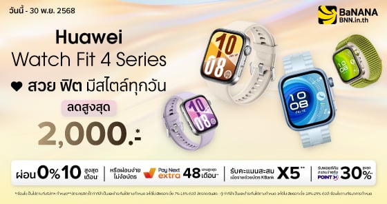 - Huawei Watch Fit 4 เพียง 3,790.- (ปกติ 3,990.-) *เฉพาะออนไลน์เท่านั้น