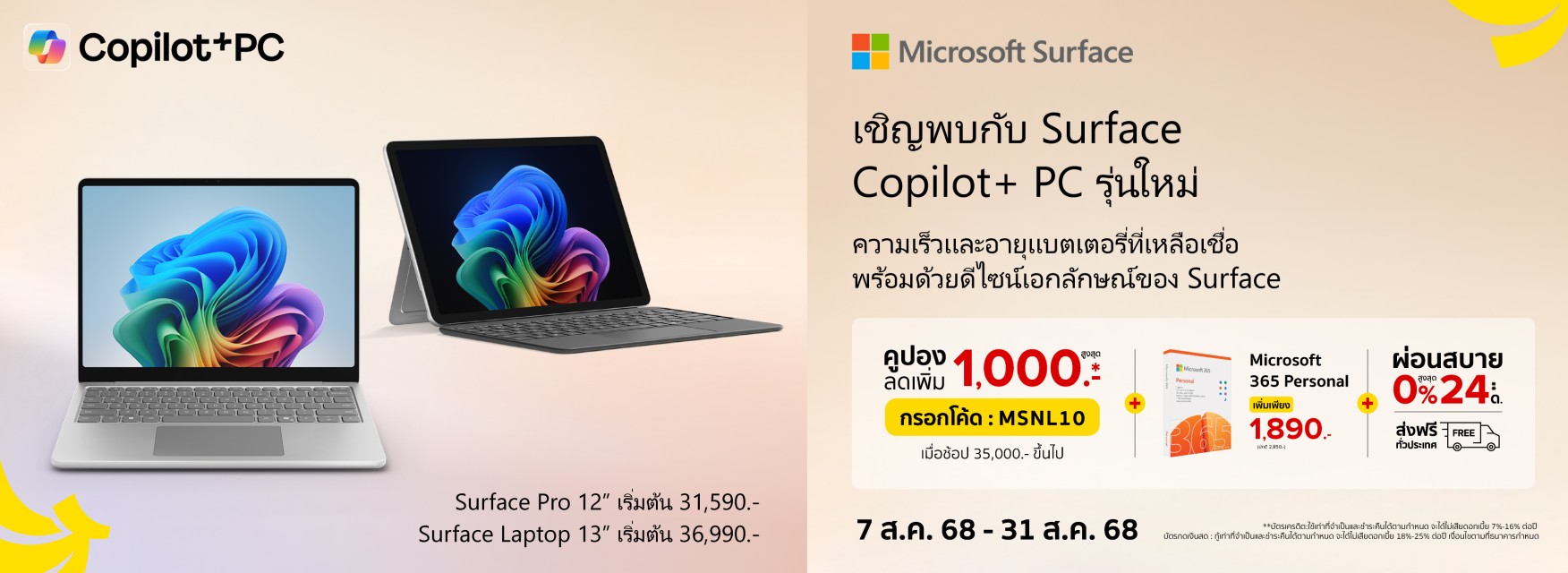 หากใครรู้สึกว่าใช่เลย จะรออะไรก็จองไปเลยสิครับ จอง New Microsoft Surface Laptop 13 และ New Microsoft Surface Pro 12 รับข้อเสนอพิเศษไปเลยแบบจุกๆ