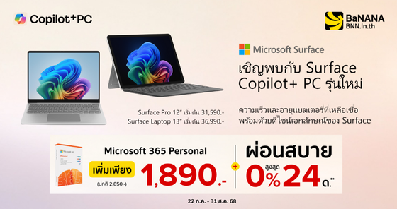 💻 ใหม่! Surface Pro 12” และ Surface Laptop 13” พรีออเดอร์ที่ BaNANA รับฟรีของแถมจัดหนักสูงสุด 9,890.-*