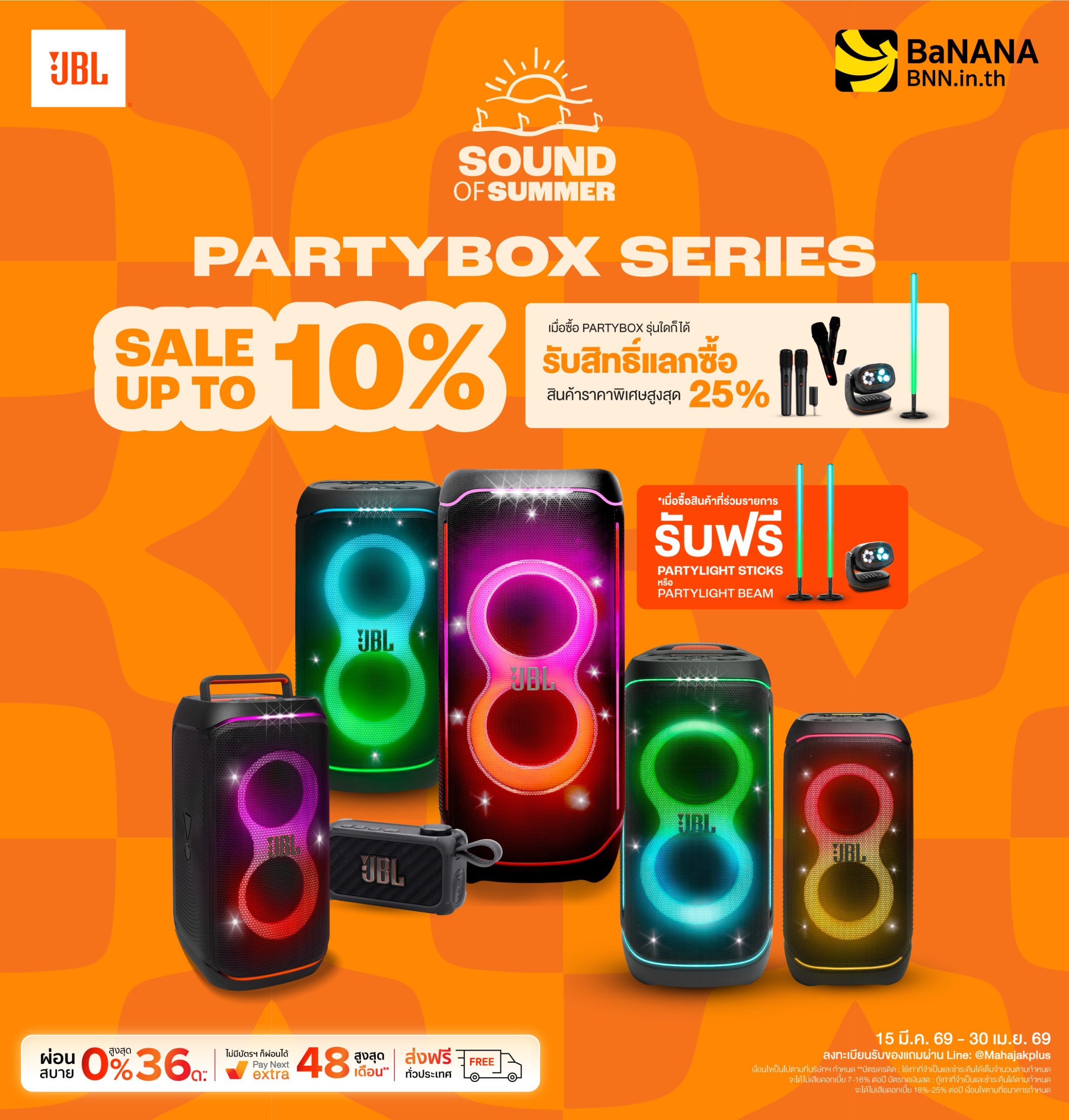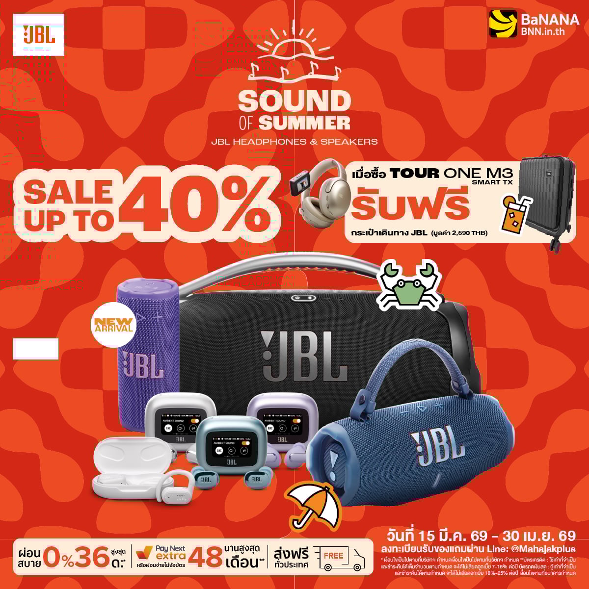 BaNANA จัดโปร SOUND OF SUMMER ลดสูงสุด 40% สำหรับ JBL และ Harman Kardon ครอบคลุมหูฟัง ลำโพงพกพา และ Partybox พร้อมของแถมและโปรเสริมหลายรายการ ตั้งแต่ 15 มี.ค. – 30 เม.ย. 2569
