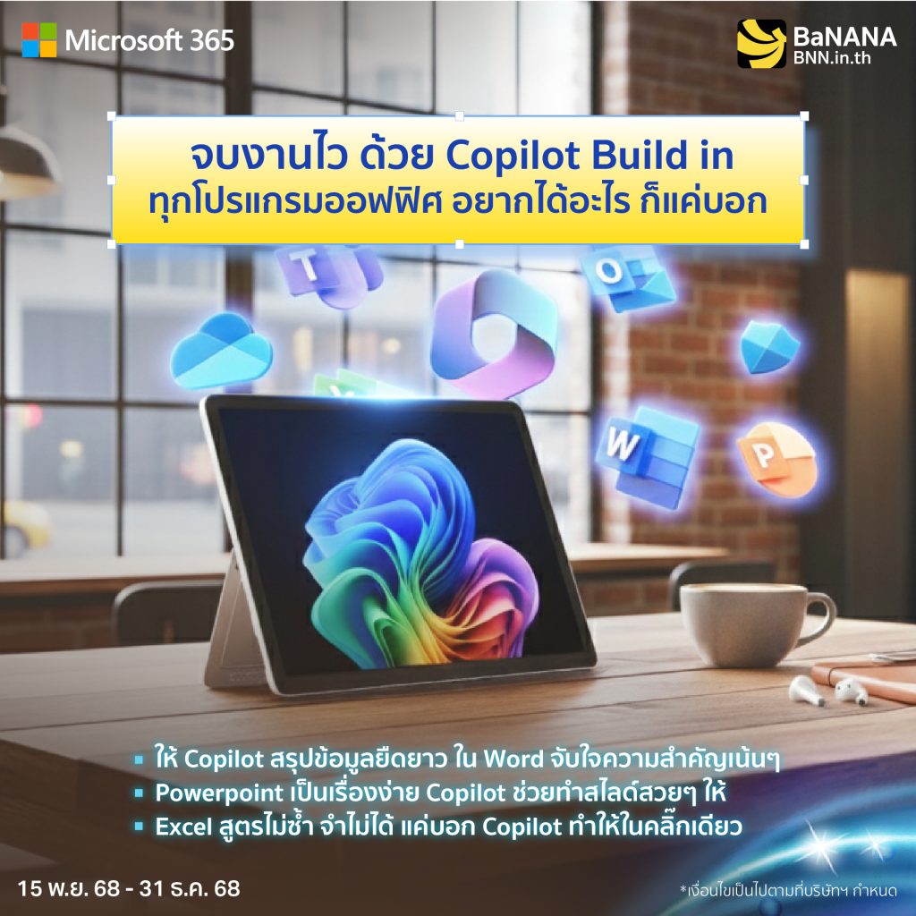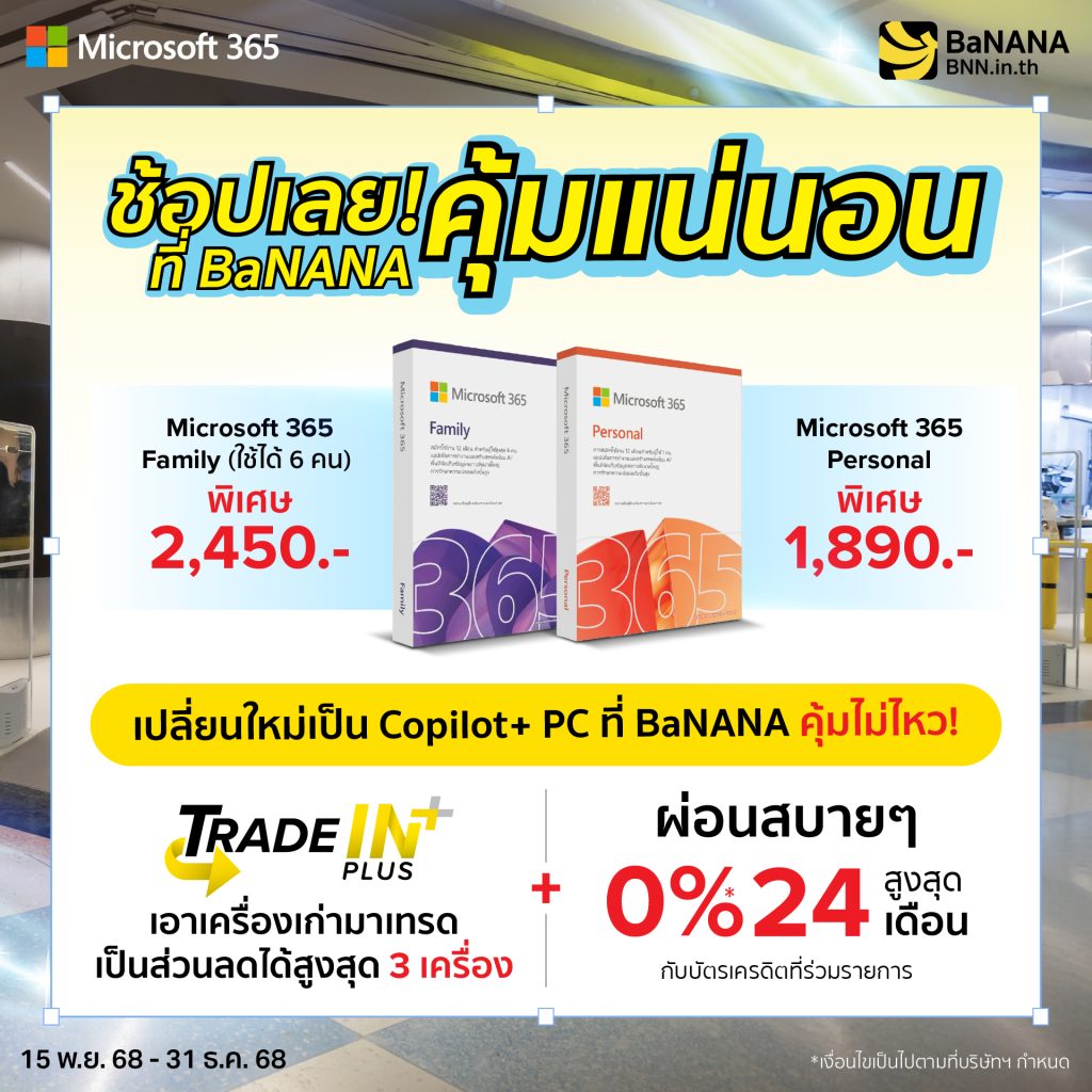 ก่อนจะไปดูความดีงาม เรามาดูโปรโมชั่นเด็ดๆ จาก BaNANA ไม่ว่าจะช้อป Notebook ใหม่ หรือสมัครเป็นสมาชิก Microsoft 365 เดือนละไม่ถึง 200.-* ก็คุ้มแบบจัดเต็ม