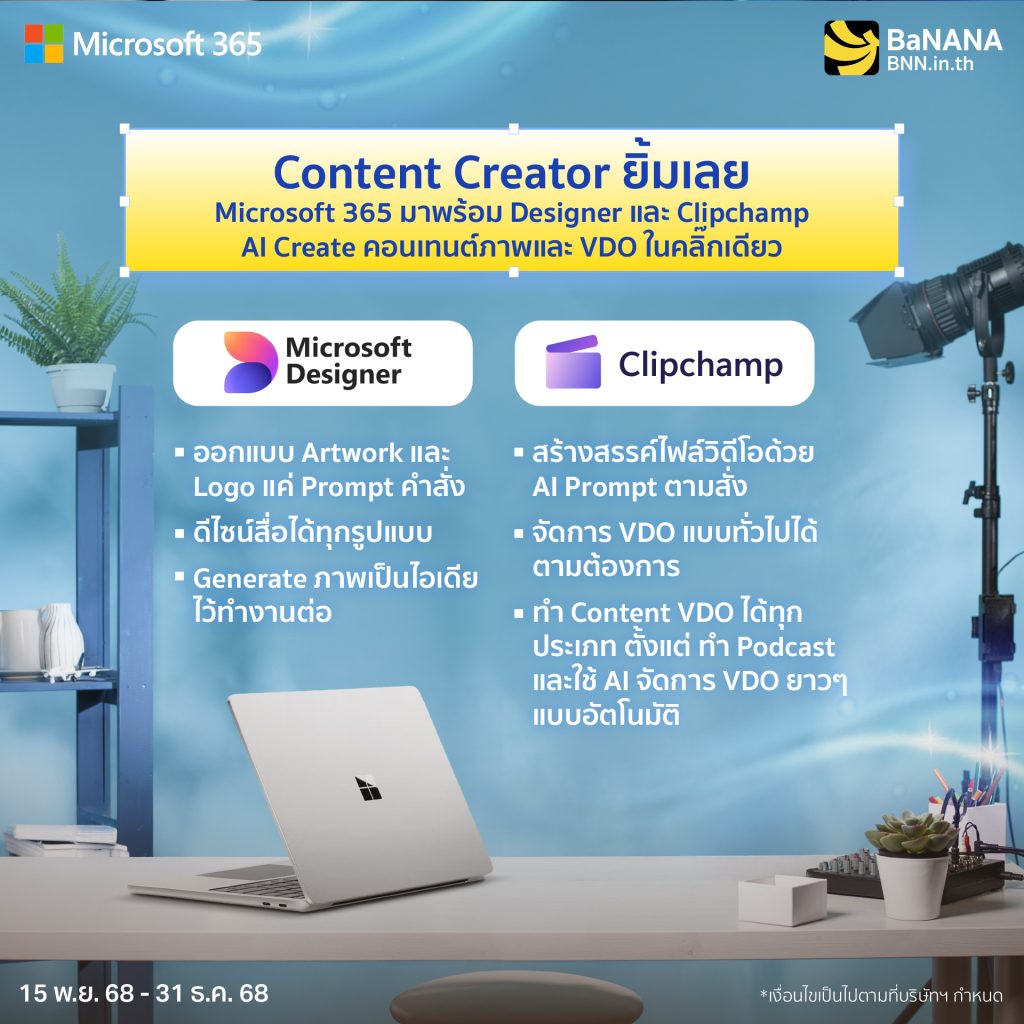และสำหรับสาย Creator ในยุคปัจจุบันที่เราเน้นการทำสื่อกราฟิก หรือสื่อ VDO สั้น หากคุณเป็นสมาชิก Microsoft 365 คุณได้ไปเลย Designer และ Clipchamp