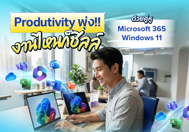 ถ้าทำงานร่วมกับ Windows 11 ก็ยิ่งลื่นไหล ลองเปลี่ยนมาใช้ Notebook ที่มี Windows 11 มาพร้อม และสมัครบริการ Microsoft 365 รับประกันชีวิตคุณจะง่ายขึ้นอีกเยอะ วันนี้มาดูกันว่า Microsoft 365 ช่วยคุณได้ยังไงบ้าง