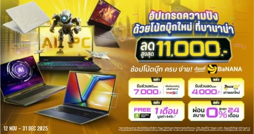 อัปเกรดความปังด้วยโน้ตบุ๊กใหม่ ที่บานาน่า ลดสูงสุด 11,000.-*