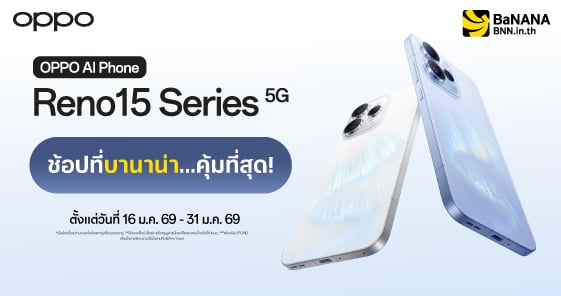 OPPO Reno15 Series 5G จองที่ บานาน่าคุ้มที่สุด ลดทันที 500.-