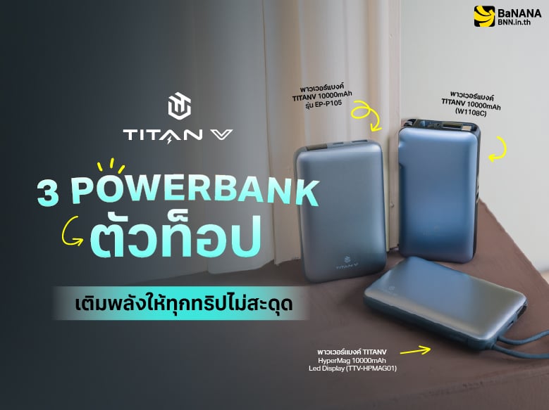 ในยุคที่สมาร์ตโฟนและอุปกรณ์ไอทีเป็นของจำเป็นติดตัว Power Bank จึงกลายเป็นไอเทมที่ขาดไม่ได้ และถ้าเลือกได้ดี ก็จะช่วยให้การใช้งานในแต่ละวันง่ายขึ้นอีกเยอะ วันนี้ขอพามารู้จักกับ Power Bank จาก TITAN V ที่หยิบมาให้เลือกถึง 3 รุ่นเด่น ความจุ 10,000 mAh ตอบโจทย์ทั้งสายพกพา สายชาร์จเร็ว และสายเทคโนโลยี