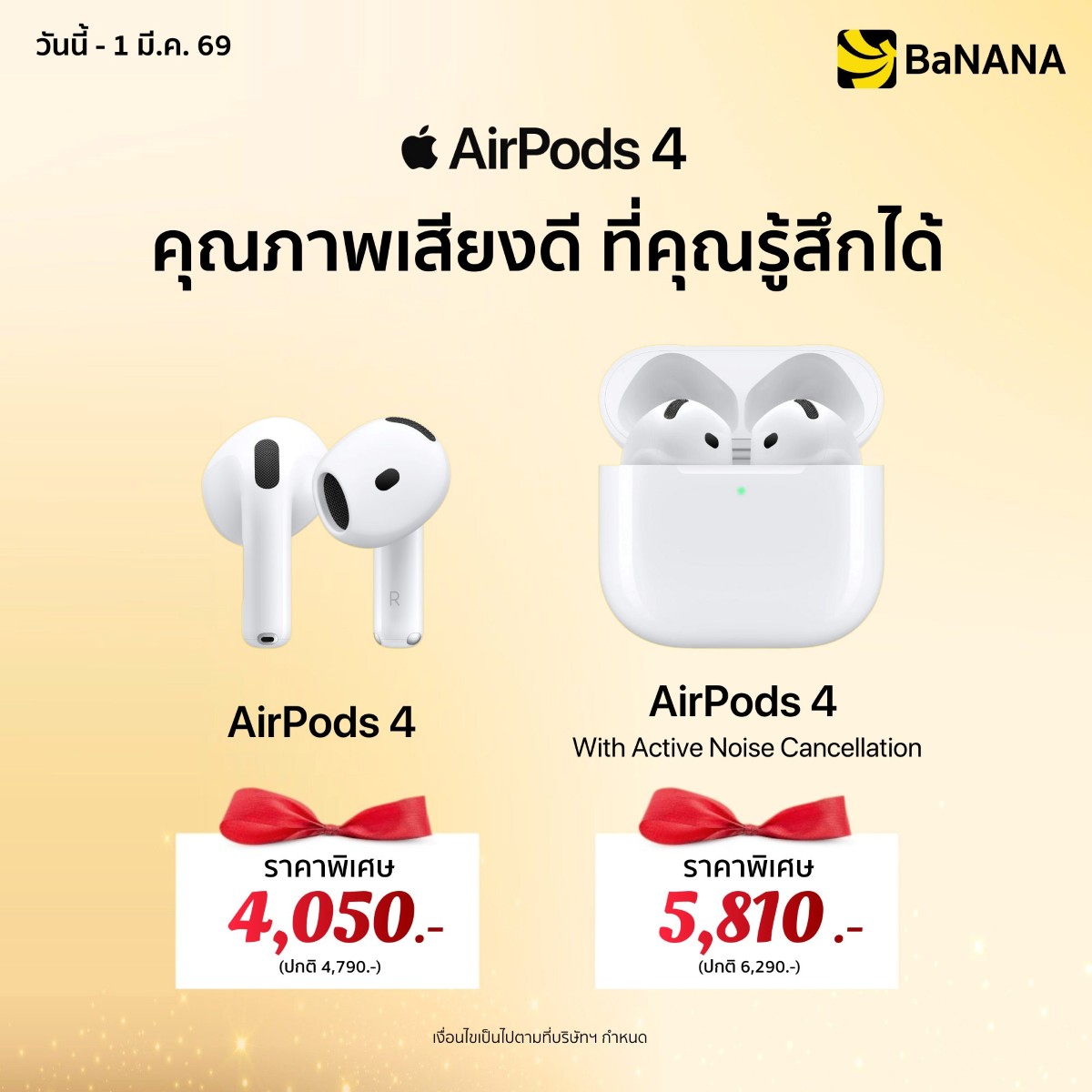 AirPods 4 ราคาเริ่มต้นเพียง 4,050 บาท