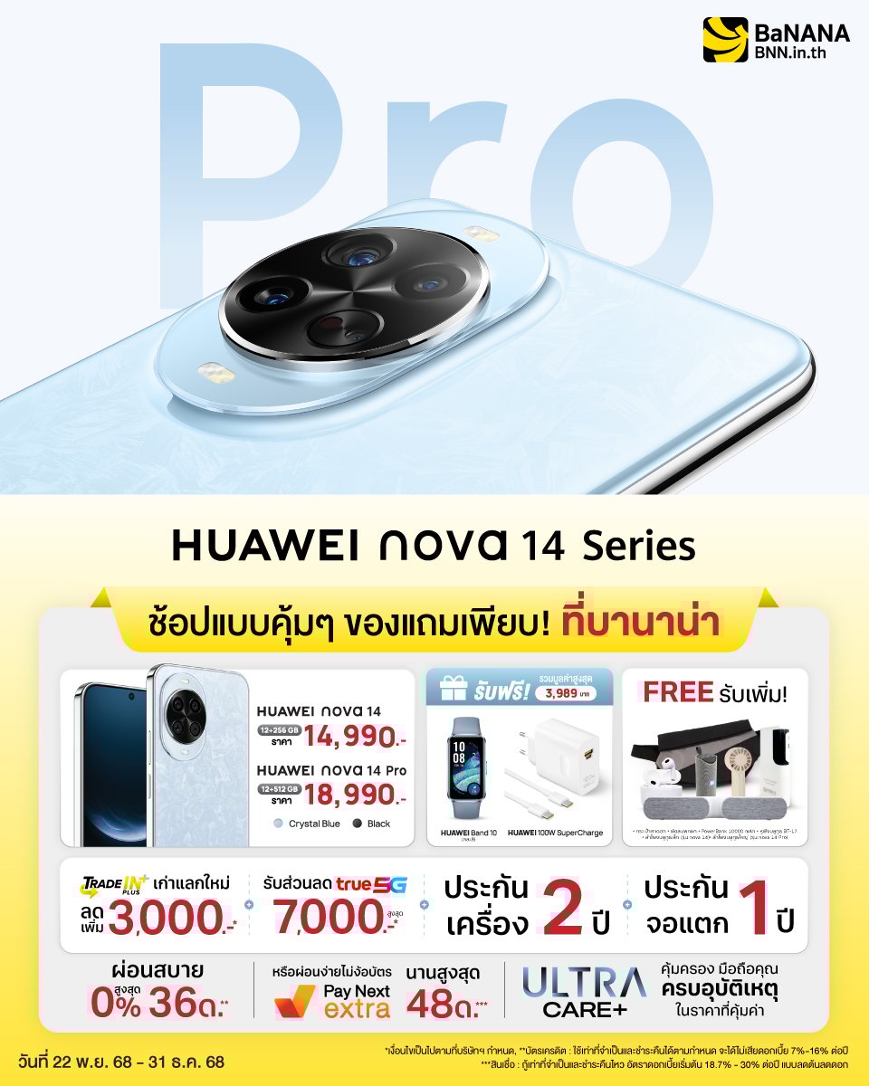 HUAWEI nova 14 Series ช้อปแบบคุ้มๆ ของแถมเพียบ ที่บานาน่า