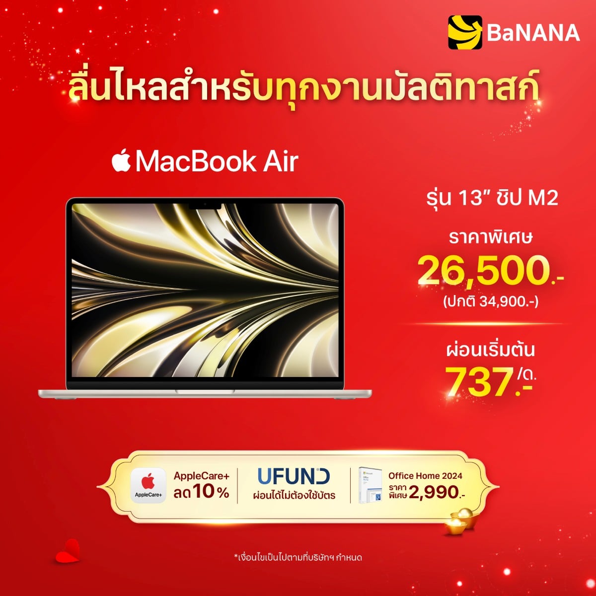 - MacBook Air 13″ (M2) ราคาเริ่มต้น 26,500 บาท