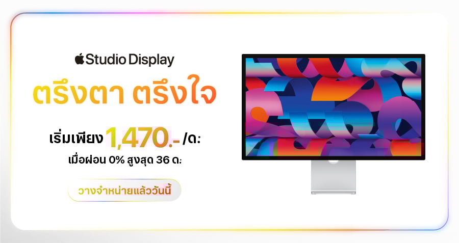 Studio Display วางจำหน่ายแล้ววันนี้ เริ่มเพียง 1,470.-/เดือน*