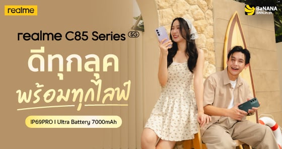 สามารถเป็นเจ้าของ realme c85 Series ได้แล้ววันนี้ที่ร้าน BaNANA ทุกสาขาและช้อปออนไลน์ได้ที่ BNN.in.th หรือช้อปง่าย ๆ แค่เป็นเพื่อนกับเราใน LINE OA : @banana_th