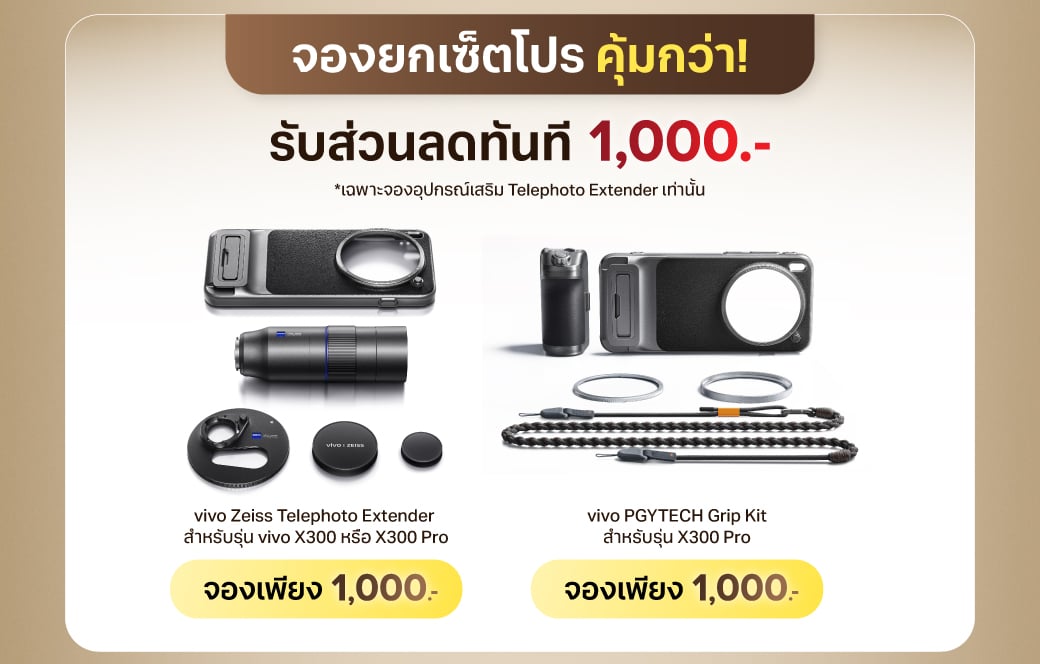 จองเลย คุ้มกว่า จองล่วงหน้าคุ้มยกเซ็ตที่ BaNANA กับชุดอุปกรณ์เสริม vivo X300 Series ช่วยให้การซูมไกลชัด เหมือนอยู่หน้าเวที 📸